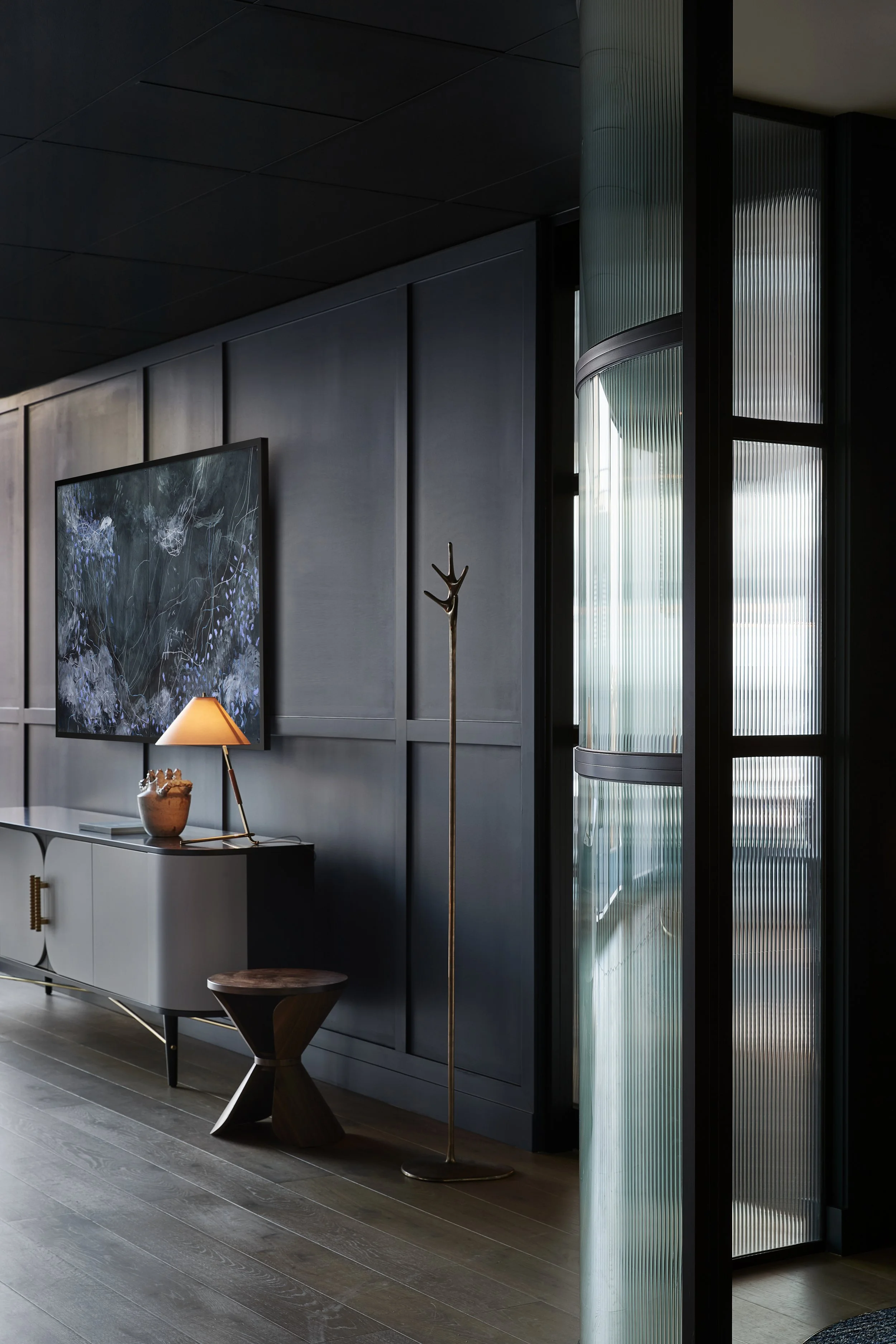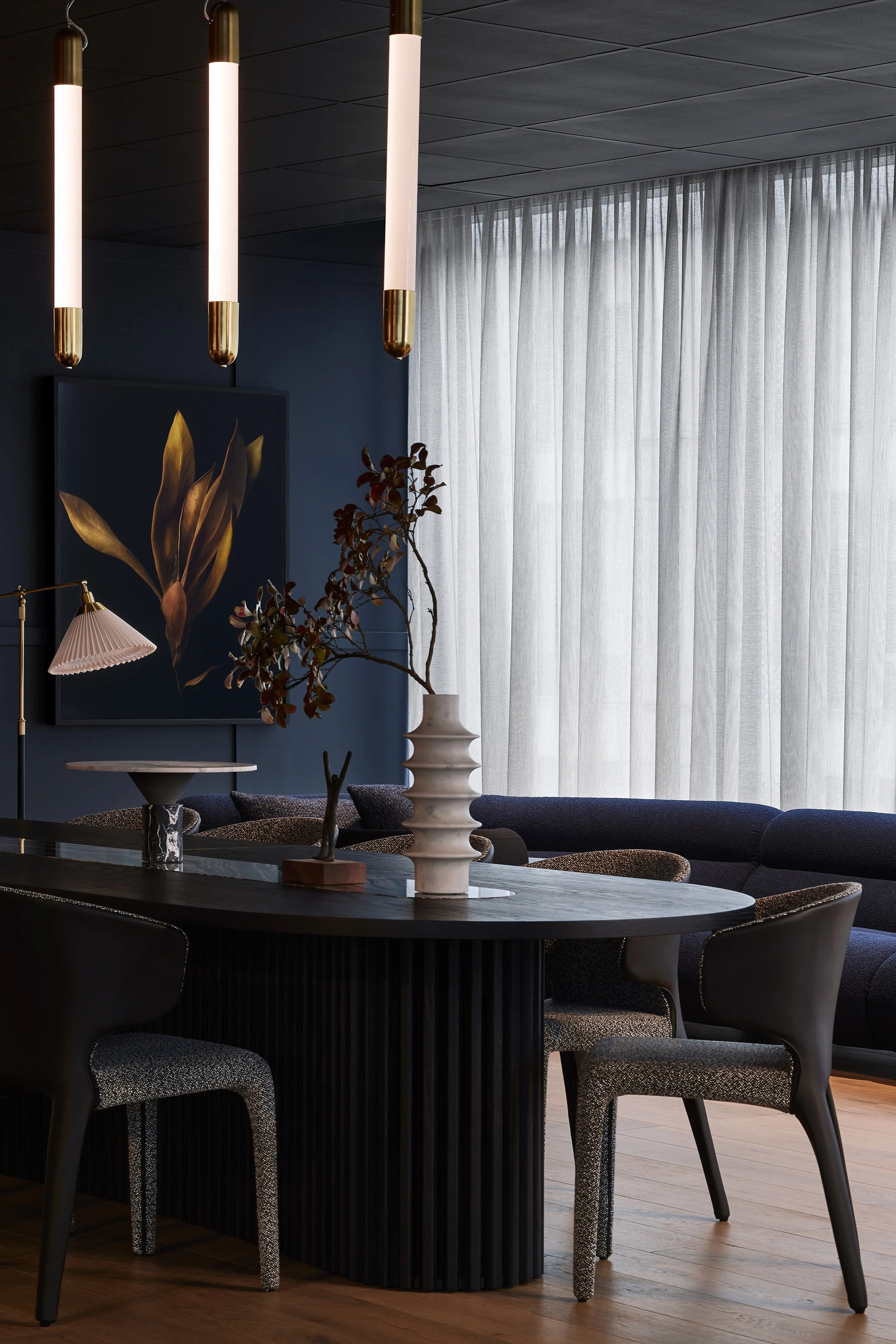 The client brief was to design a workspace that was more residential focused and reminiscent of an exclusive New York private club. What immediately came to mind was to create an exclusive establishment as opposed to a “workspace”, where leading entrepreneurs and creatives could gather to exchange ideas with whisky swirling in fine crystal and enjoying a private dinner.